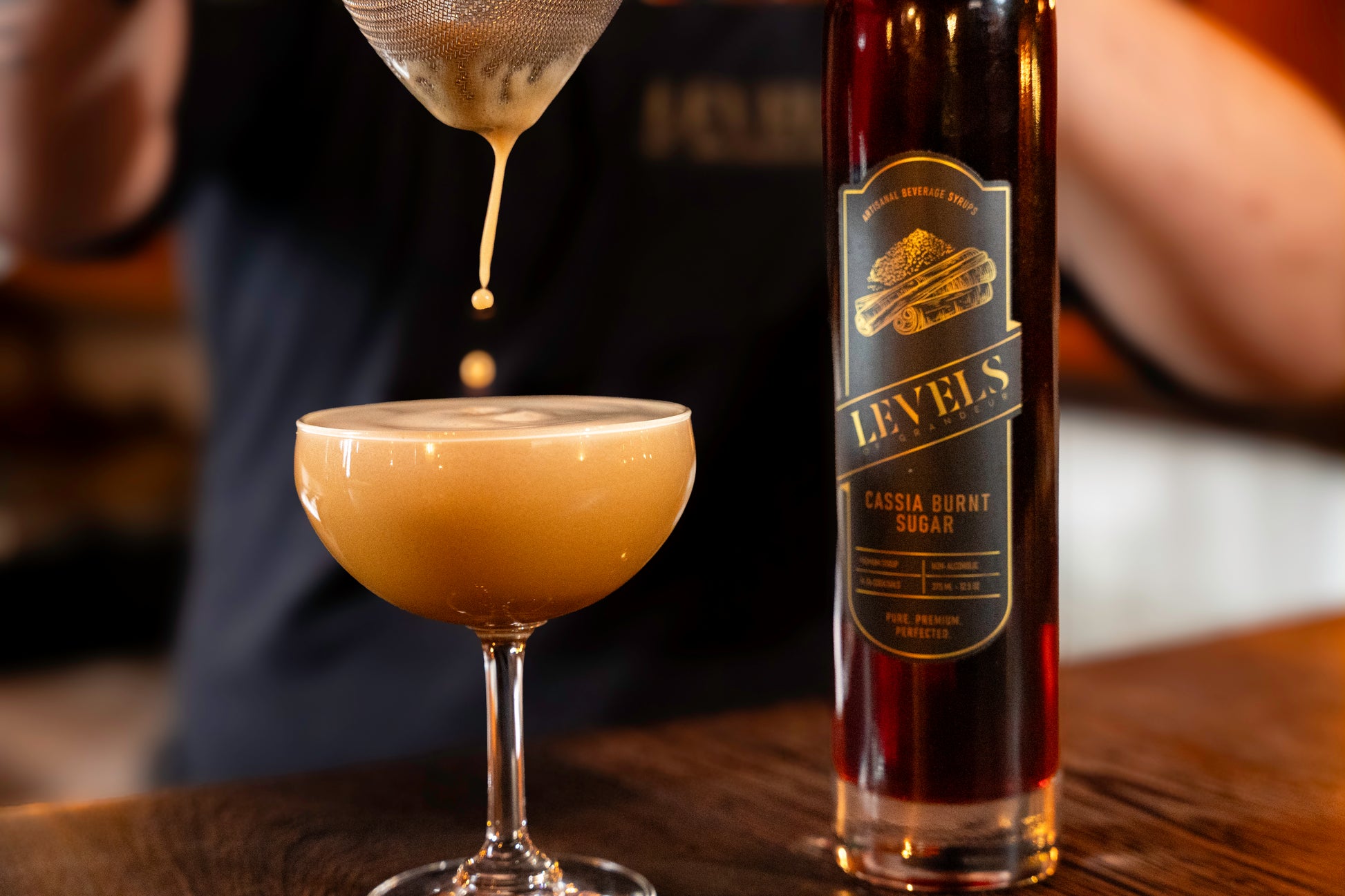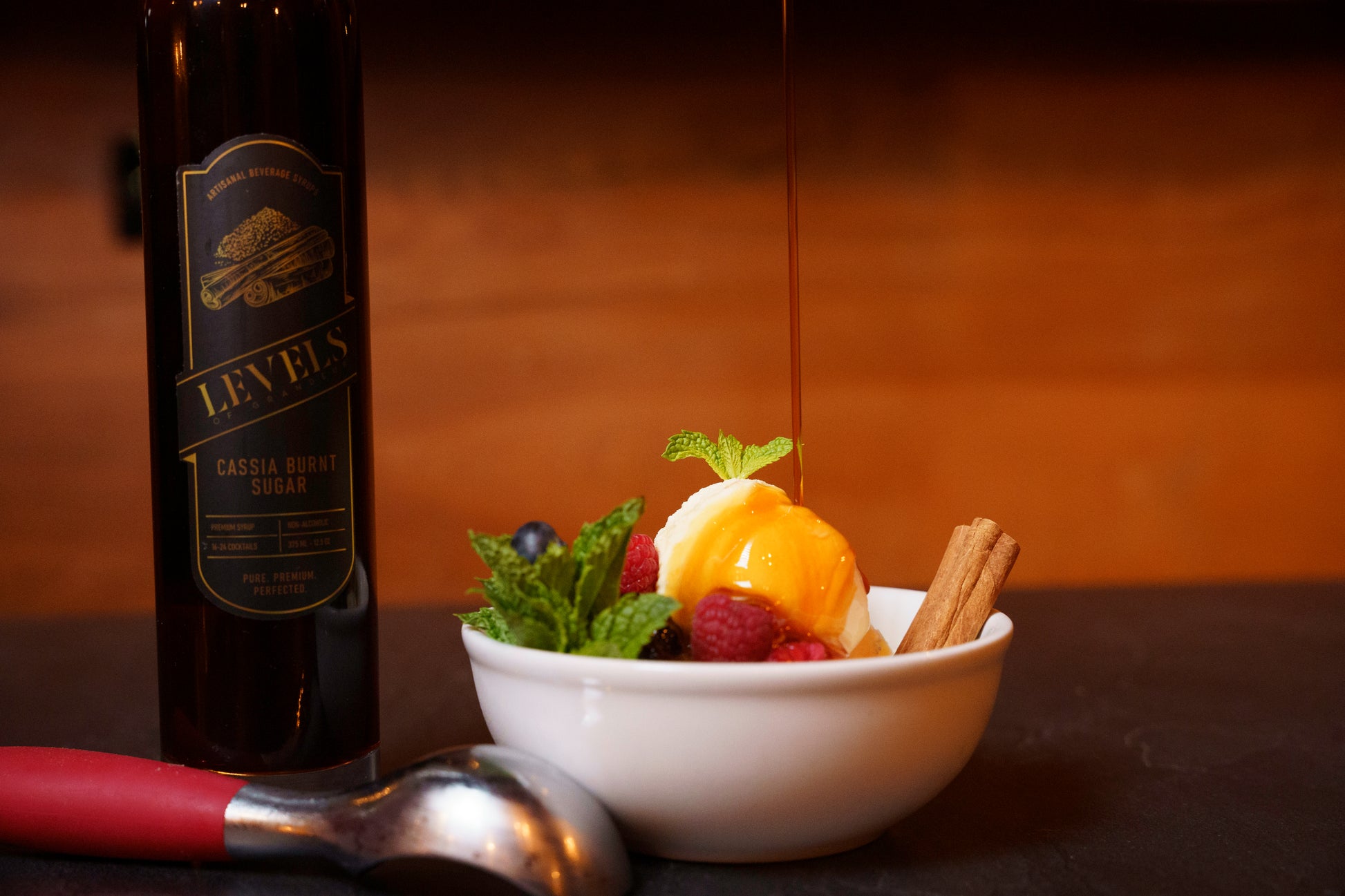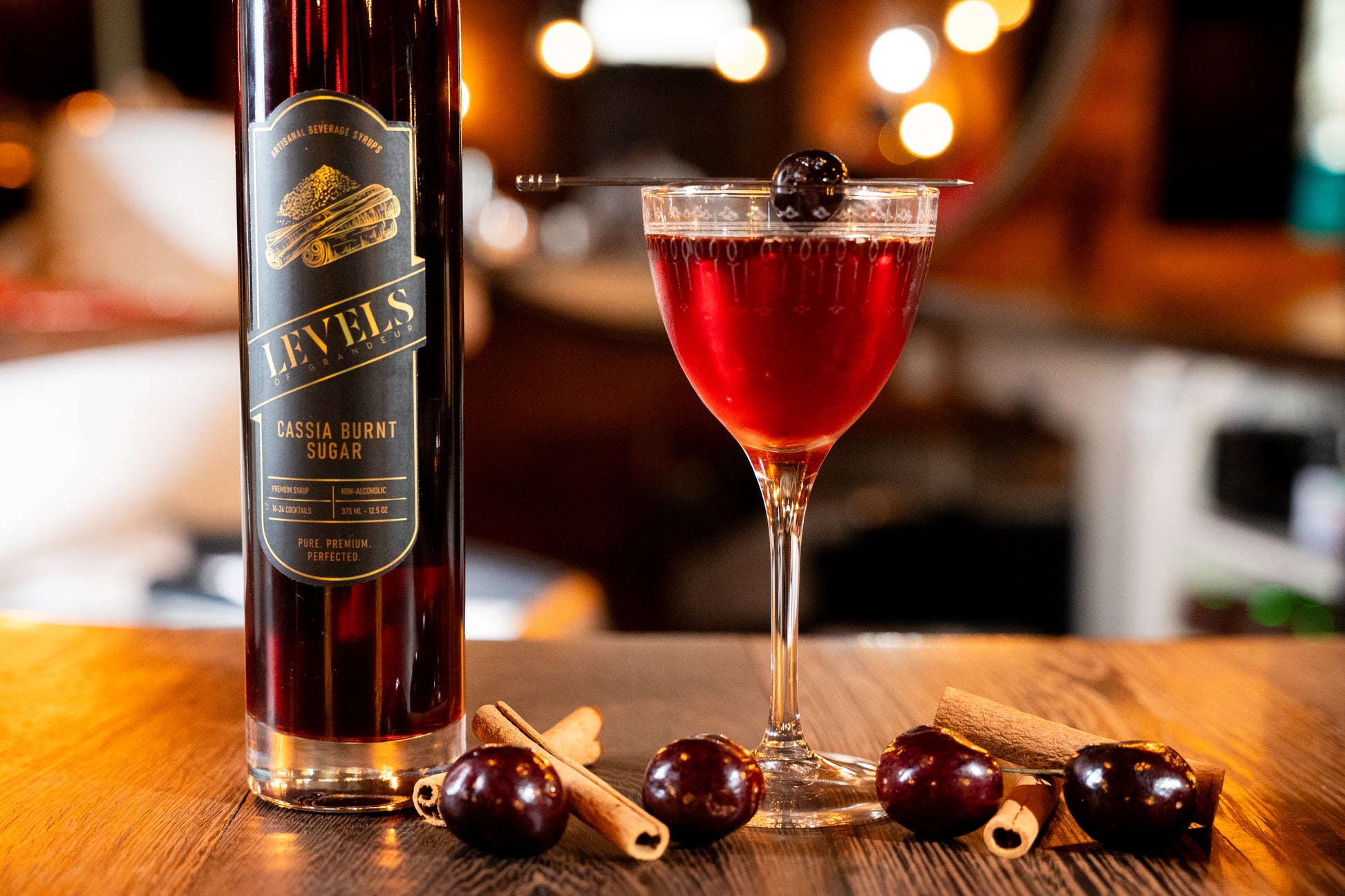 A dark, aromatic syrup that blends the deep richness of caramelized sugar with the warm spice of cassia cinnamon. Its bold flavor and silky texture add sophistication to spirit-forward cocktails, coffee drinks, and desserts alike.